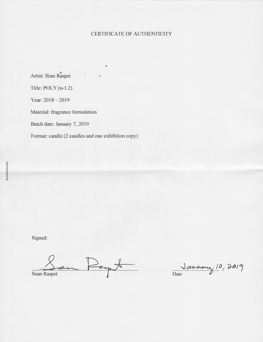 POLY (n-1.2), 2018 - 2019 Fragrance formulation 10 x 7.5 x 7.5 cm.
