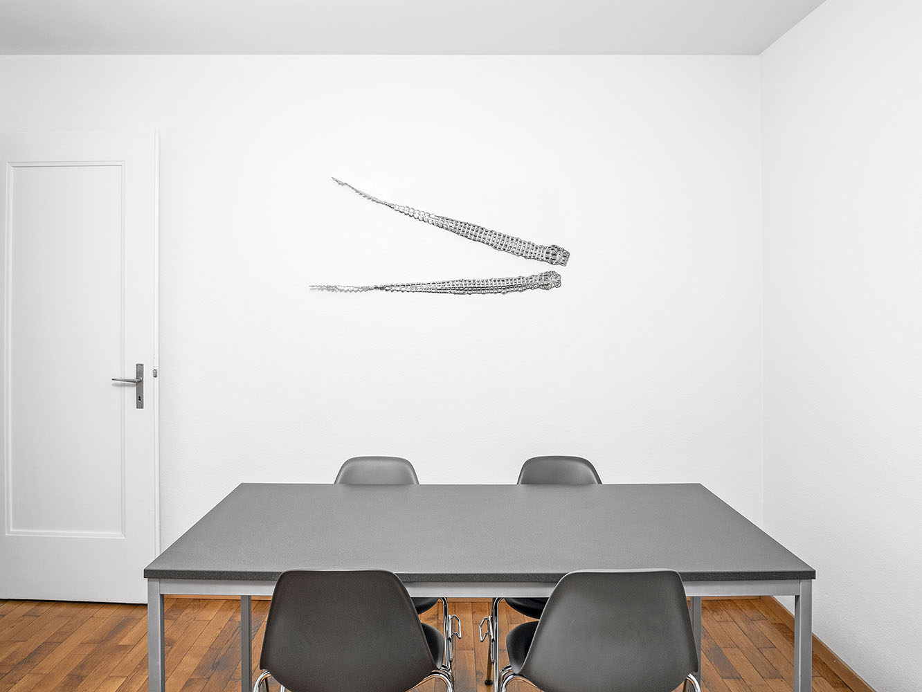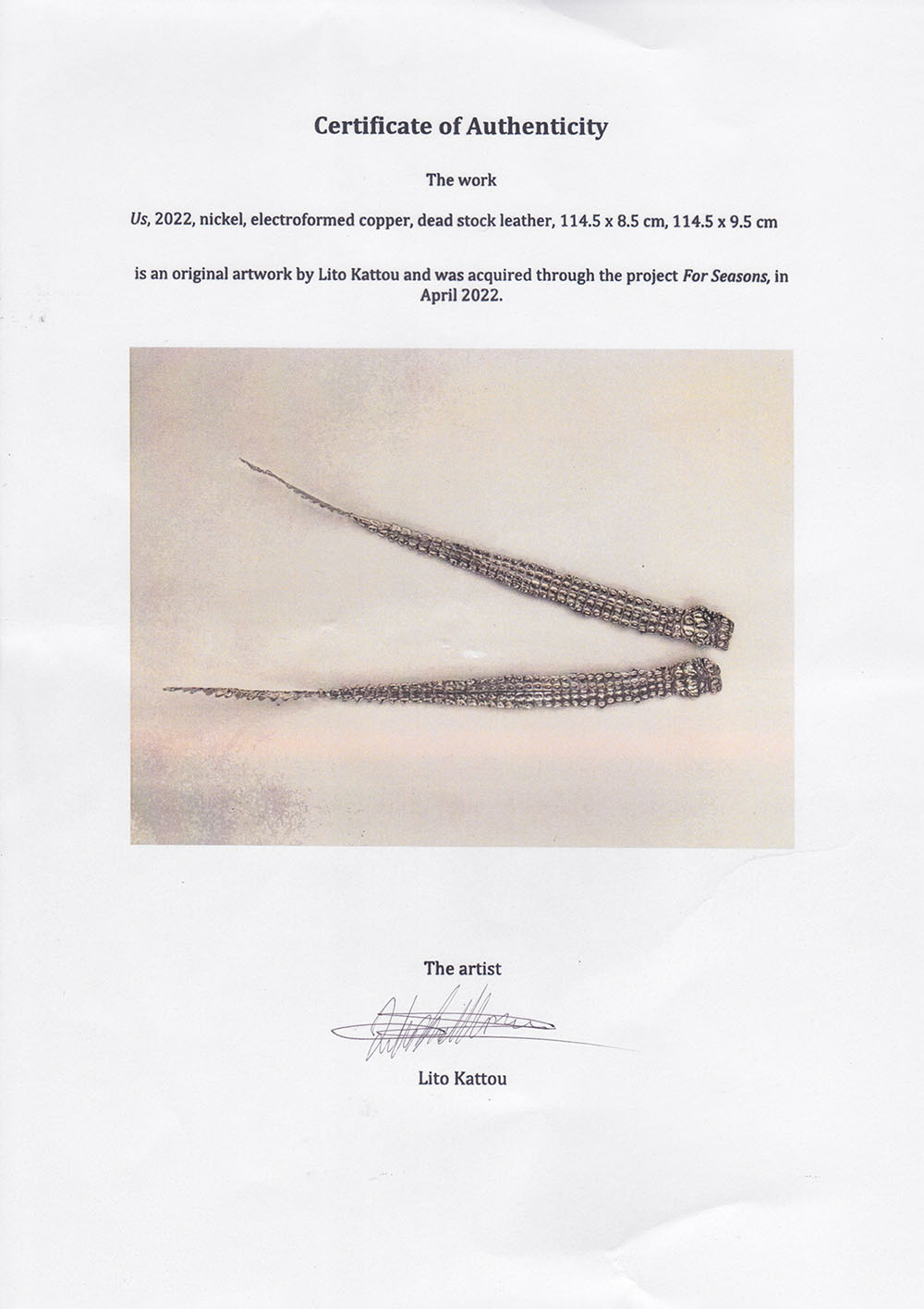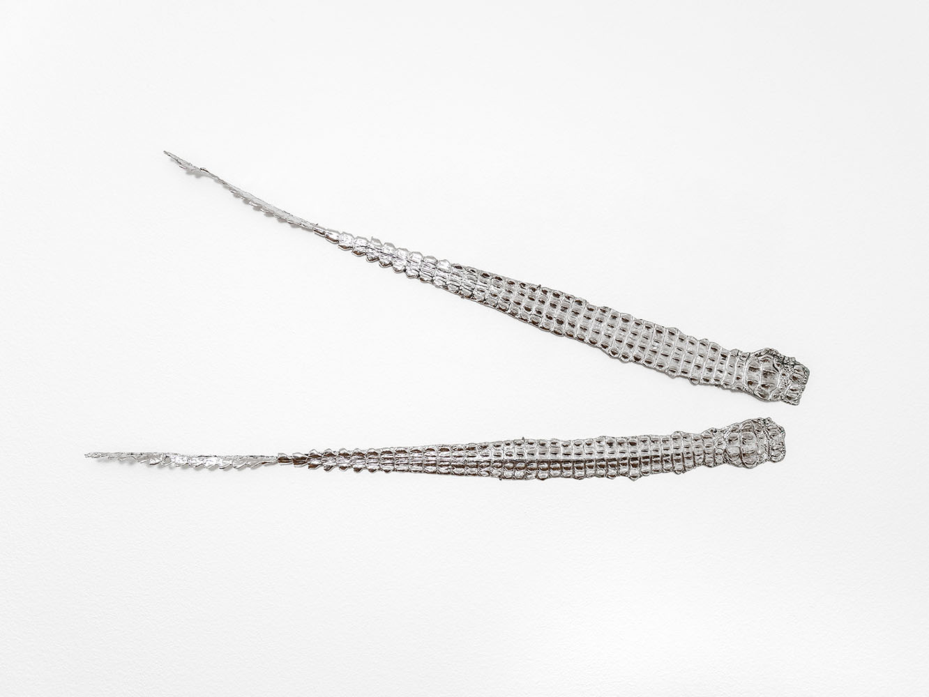 Us, 2022 Nickel, electroformed copper, dead stock leather 114.5 x 8.5 cm., 114.5 x 9.5 cm.