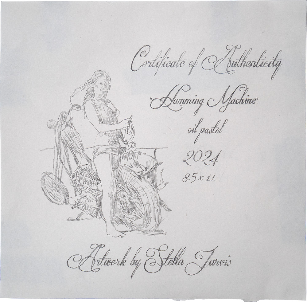 Humming Machine, 2024 Oil pastel on paper, framed 29 x 23 cm.